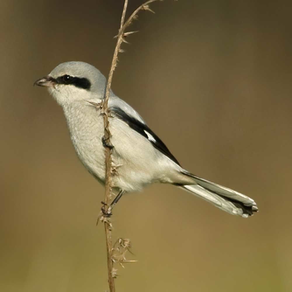In tegenstelling tot wat zijn naam doet vermoeden is deze fascinerende gast uit het hoge noorden helemaal geen ekster, maar een klauwier. Het is een solitaire, middelgrote grijswitte zangvogel met lange staart, zwart ‘boevenmasker’ en een gevaarlijk uitziende gehaakte snavel waarmee hij korte metten maakt met grote insecten, hagedissen en amfibieën en zelfs muizen en zangvogels. Die spietst hij dan aan meidoorns en prikkeldraad zodat hij ook tijdens periodes van schaarste wat te peuzelen heeft. Vroeger broedde de klapekster nog in ons land, in uitgestrekte hoogveengebieden, nu komen ze hier alleen nog in kleine aantallen als doortrekker en wintergast voor. Je maakt de meeste kans in rustige, uitgestrekte, open gebieden met spaarzame boompjes en struiken, zoals heidevelden, hoogvenen en duingebieden. Vaak zitten ze dan in de top van een boom of struik als een torenvalk op de uitkijk en kan je ze ontdekken door goed te scannen met je kijker. Als je deze fascinerende vogel ineens in beeld krijgt, geeft dat een enorme kick die je niet snel zal vergeten.